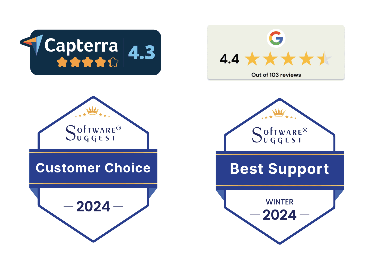 Our expert support team is rated 4.5 stars and has achieved a 9/10 Customer Satisfaction Score. Recognized by top organizations for our exceptional service, awarding us valuable badges for outstanding support and as a customer-choice favorite.